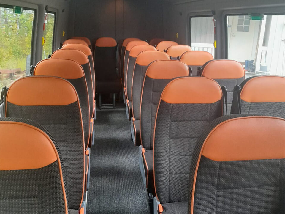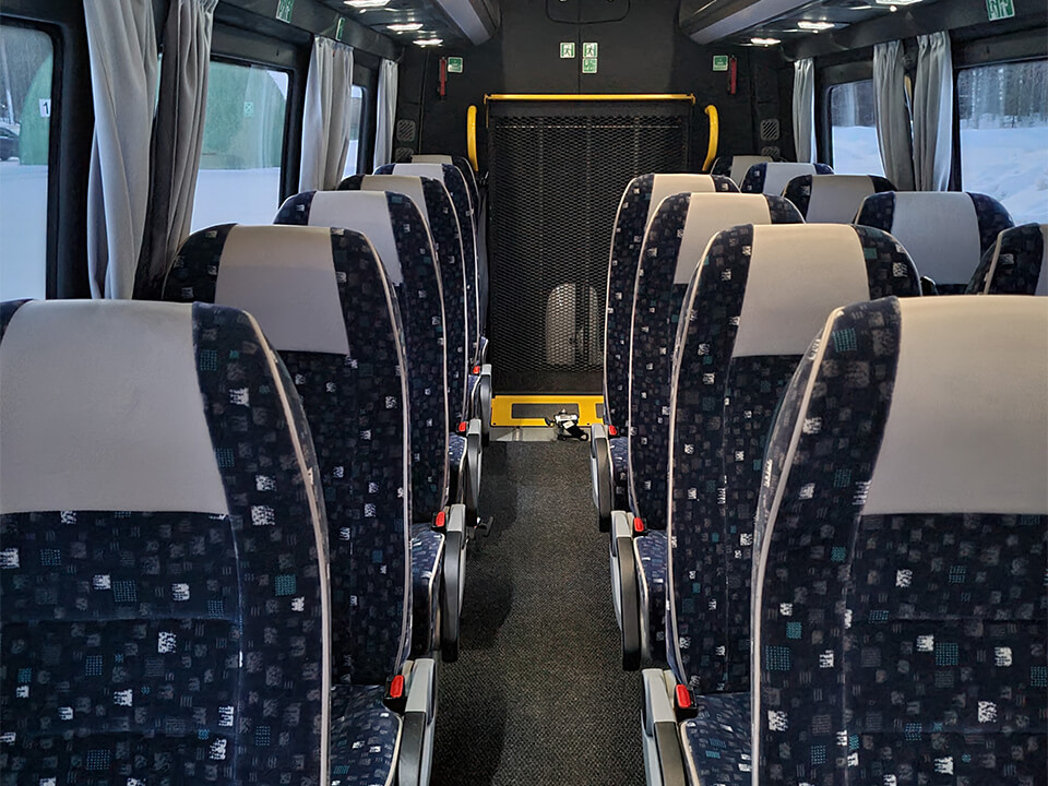 19 paikkaa tai 16 paikkaa ja 1 pyörätuoli