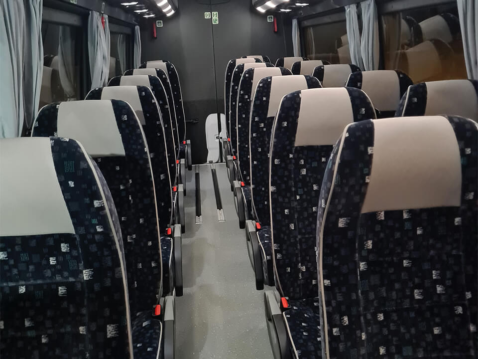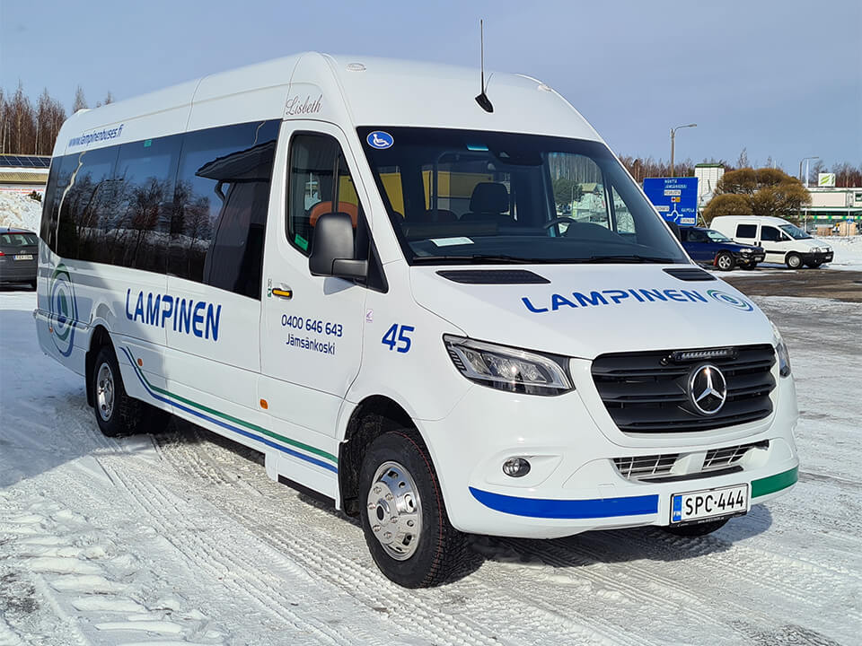 23 paikkaa tai 20 paikkaa ja 1 pyörätuoli
